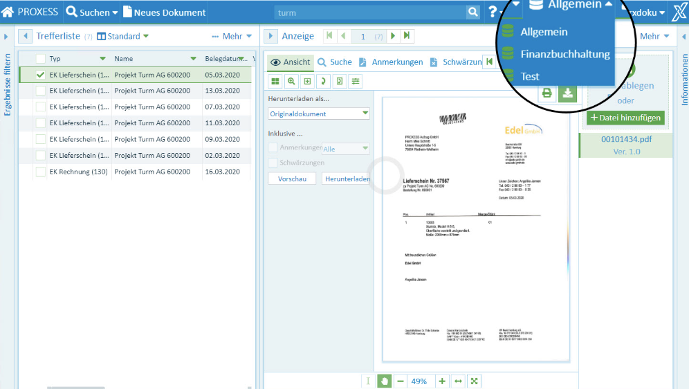 Dokumente werden in PROXESS Web Client in einem integrierten Viewer angezeigt. So sind Sie unabhängig vom Originalprogramm, mit dem die Datei ursprünglich erstellt wurde.