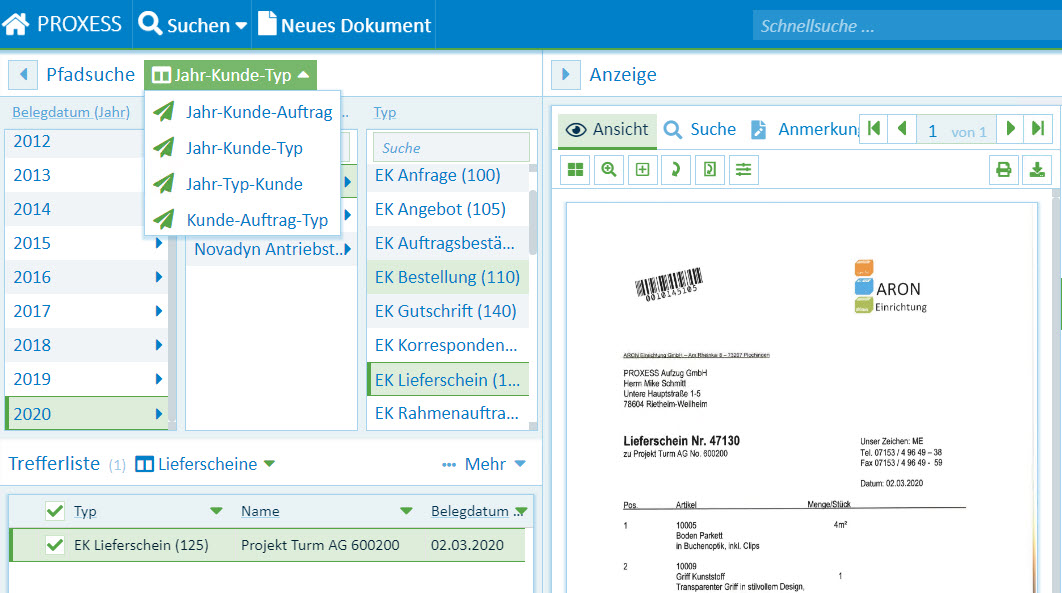 Mit der Pfadsuche suchen Sie am besten, wenn Sie keinen genauen Suchbegriff wissen. Die Pfadsuche führt Sie durch die vorhandenen Dokumente. Dabei können Sie auf jeder Ebene die Trefferliste immer weiter eingrenzen.