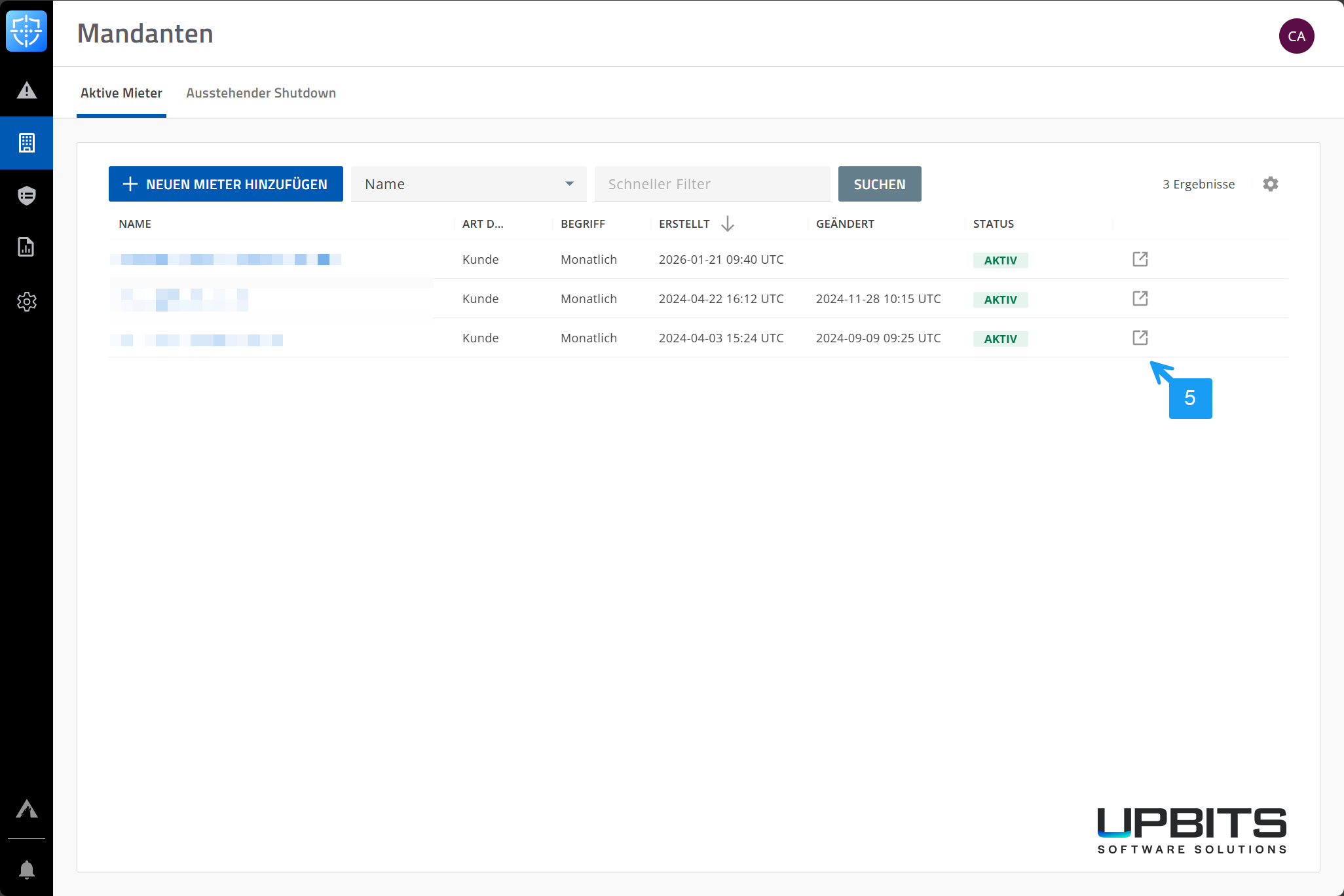 Nach der Anmeldung kann man dort Neue Mandanten anlegen.