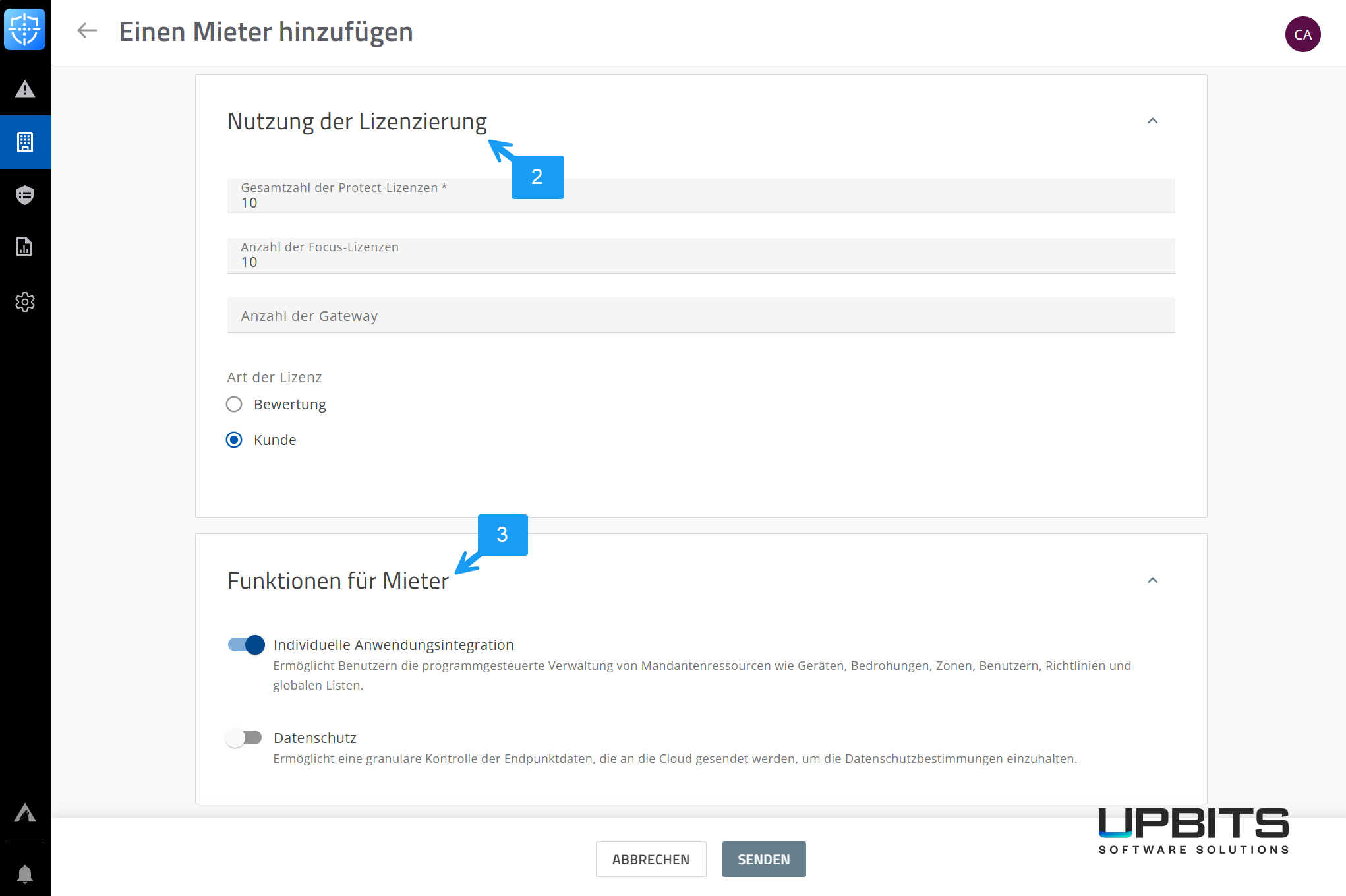 Hier kann aktiviert werden ob der Kunde selber auch Änderungen an der Console / Richtlinien etc. durchführen kann oder ob dies Komplett über UPBITS erfolgt.