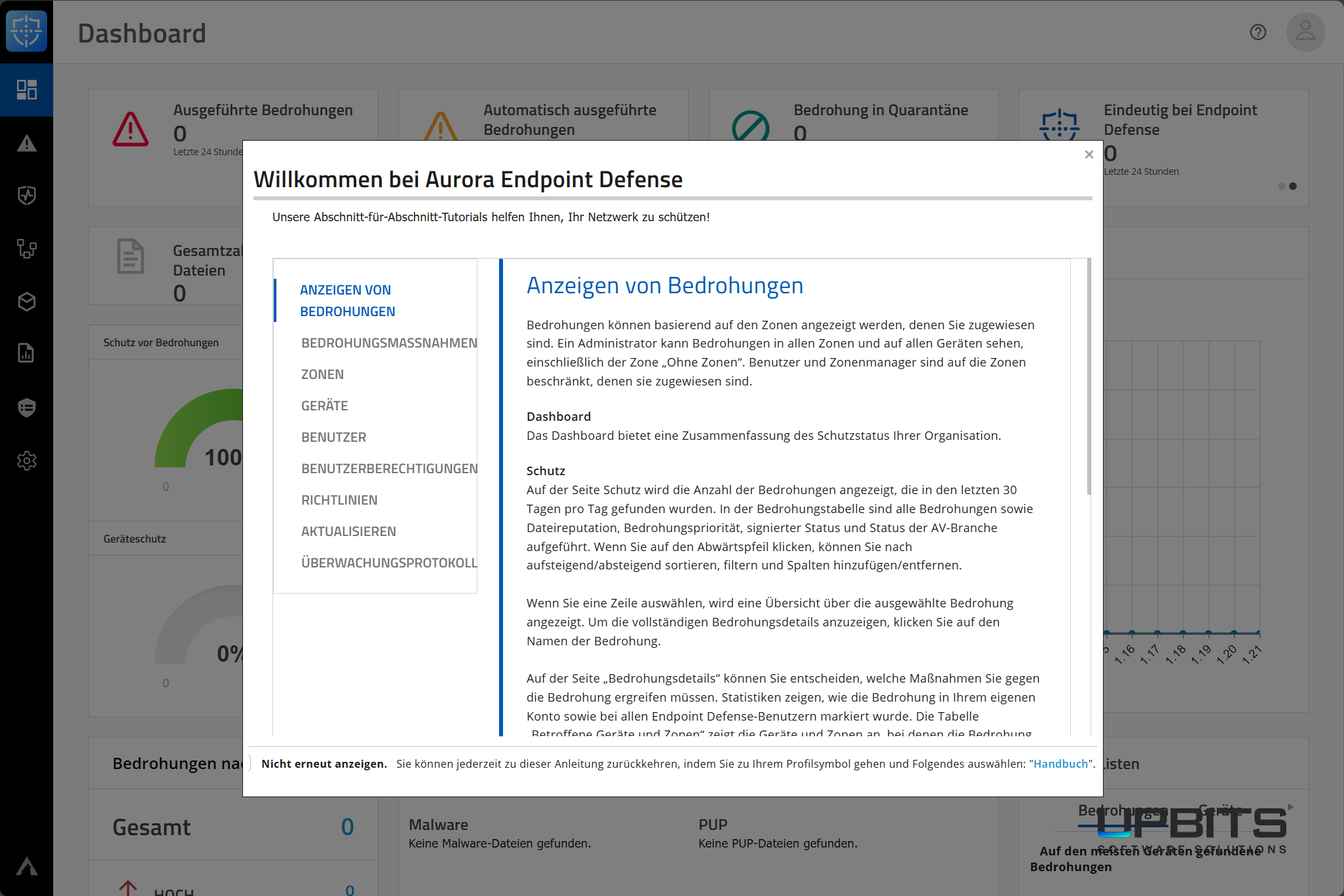 Weiter zur Ersteinrichtung der Aurora Endpoint Defense Lösung.