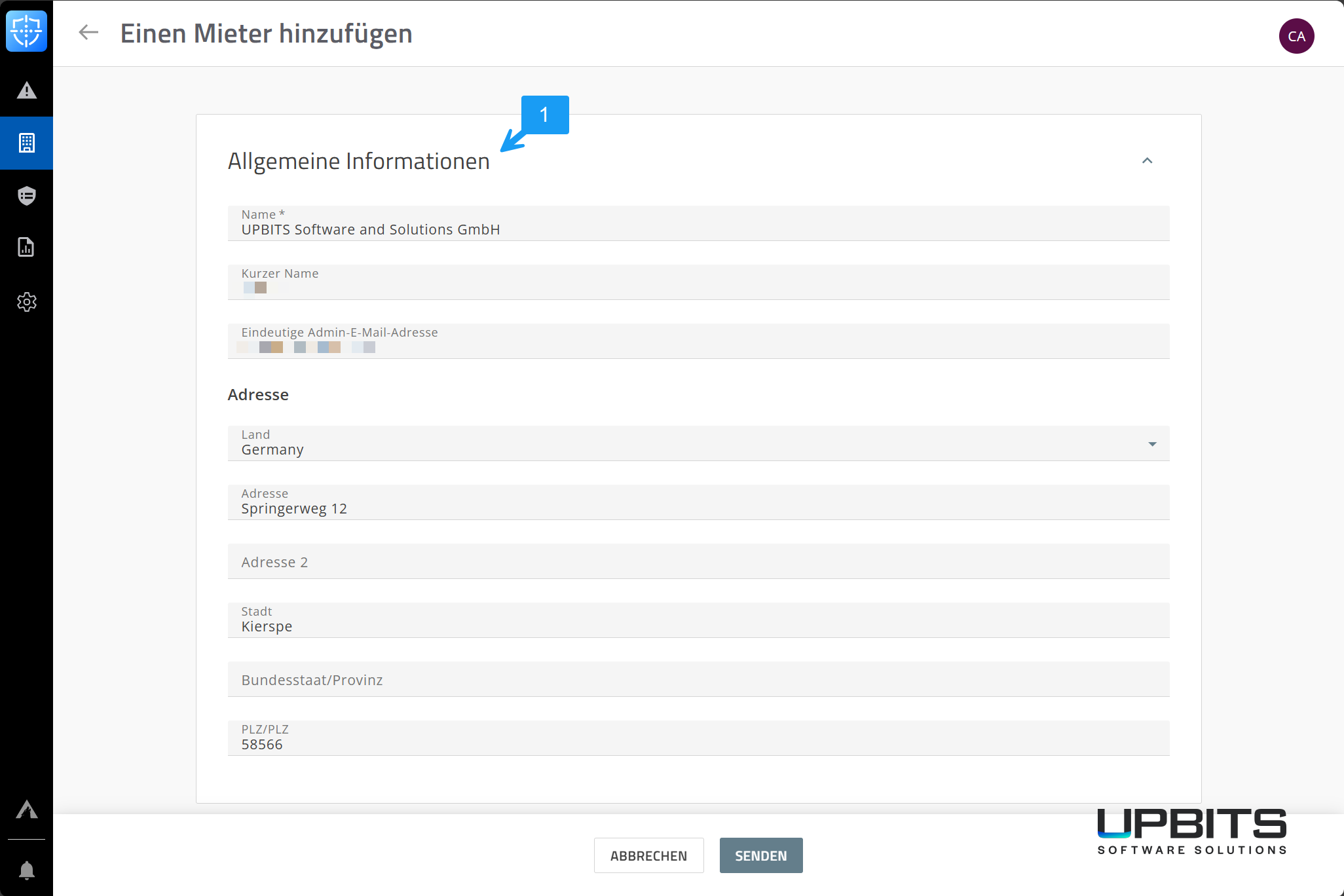 Hier werden die Stammdaten hinterlegt. Besonders die E-Mail ist für die Kundenanmeldung wichtig.