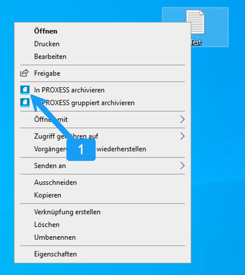 Hierzu klicken Sie auf die Datei welche Sie archivieren möchten Rechte Maustaste und wählen 1) In PROXESS archivieren