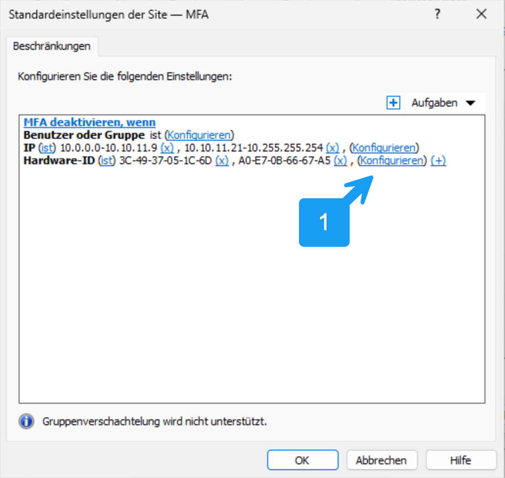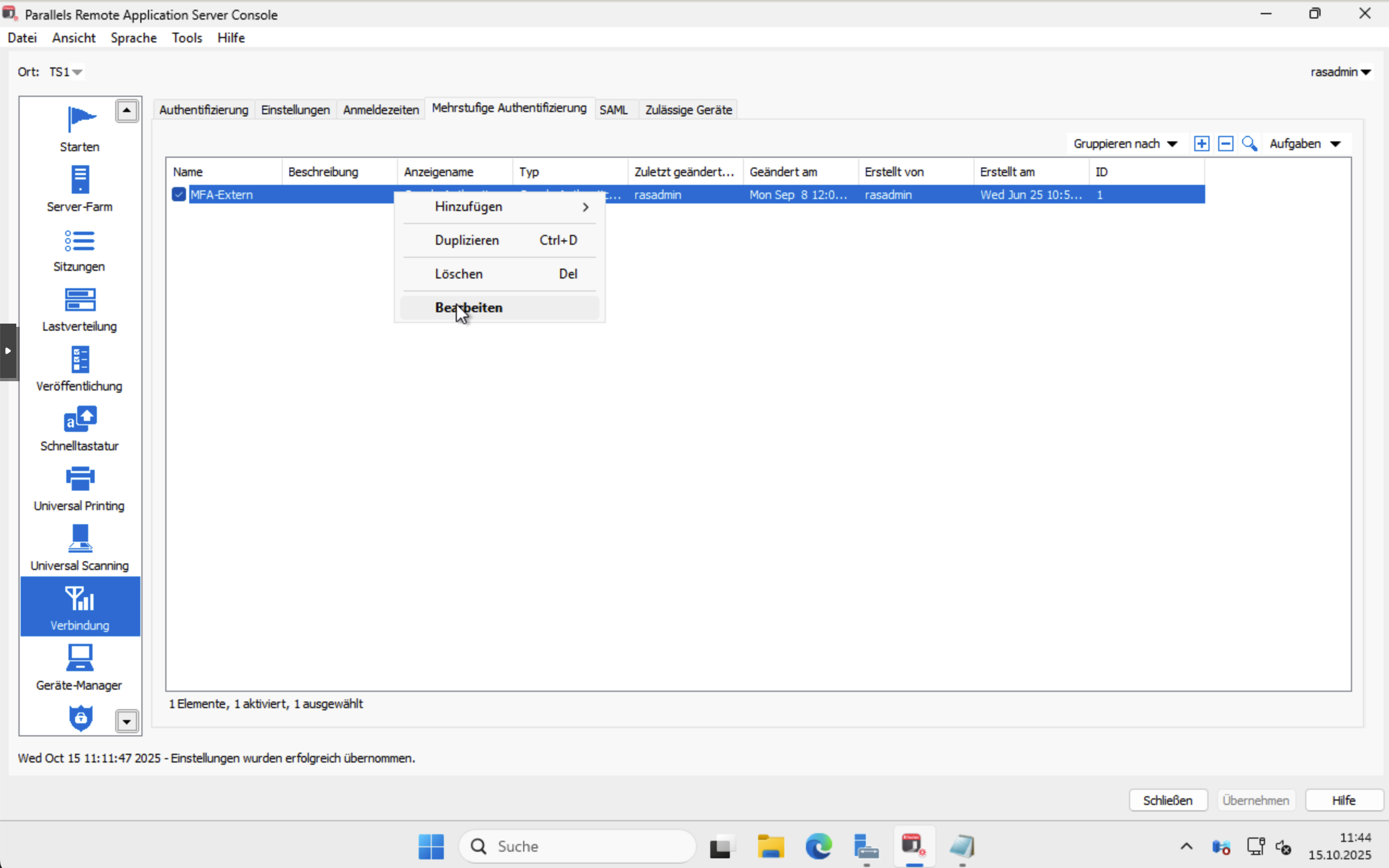 Rechte Maustaste auf die MFA-Extern und Bearbeiten