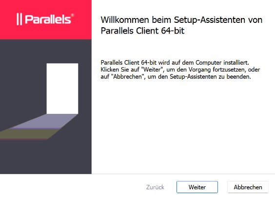 Sobald der Windows Rechner in der Domäne ist kann der Parallels RAS Client installiert werden.