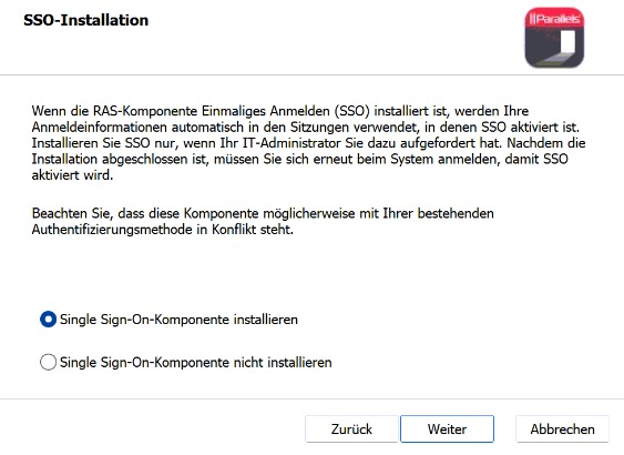 Zudem muss die SSO Komponente installiert werden.
