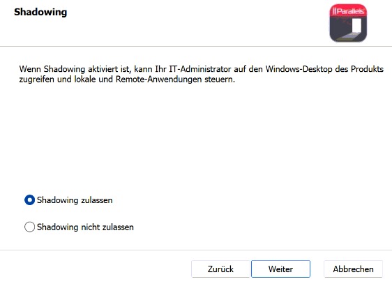 Für den Desktopshare sollte Shadowing aktiviert sein.