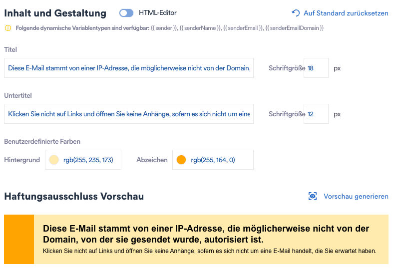 Warnung, wenn eine E-Mail von einem Server gesendet wurde, der nicht für die Absenderdomain autorisiert ist (SPF-Check schlägt fehl).